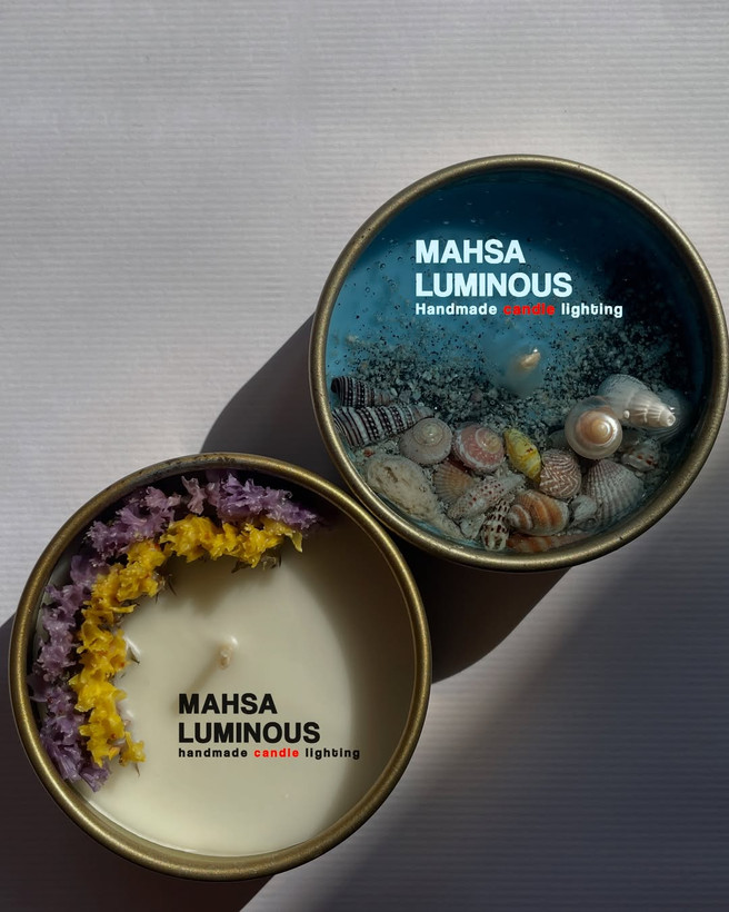 روشنایی طبیعی در قوطی فلزی شمع گیاهی با ابعاد ۲۶/۵ سانتیمتر، قابل در چهار طرح: مارگریت طلایی دریایی گل رنگ قوطی مشکی /طلایی /نقره ای